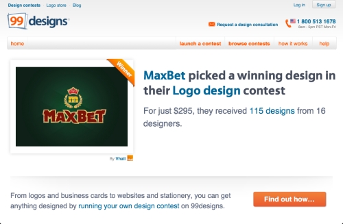 S obzirom na činjenicu da se dosta talentovanih mladih dizajnera okuplja na sajtovima koji su svoje delatnosti okrenuli ka dizajniranju logoa prema potrebama klijenata, Marčeta je predložio sajt 99designs.com. Na ovom sajtu okupljaju se dizajneri iz celog sveta, te su rešenja koja su dobijena za MaxBet logo bila raznovrsna i na veoma visokom nivou.