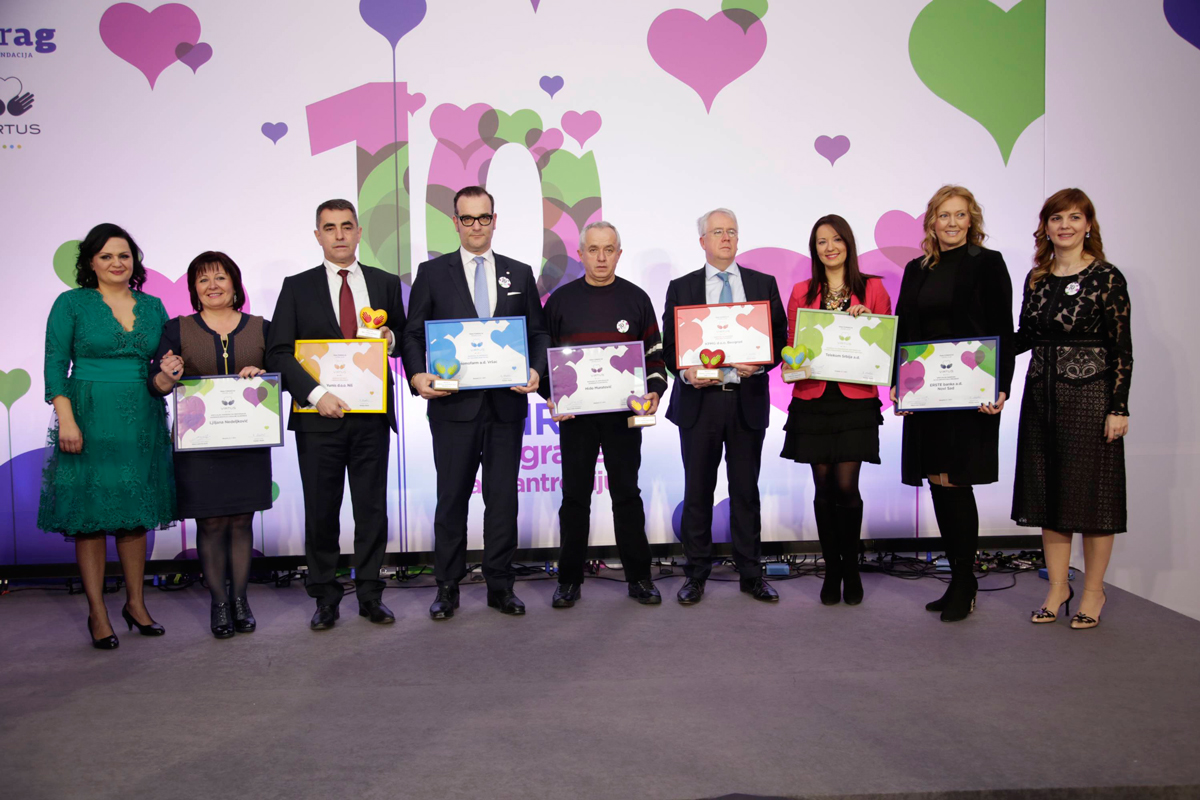 Dobitnik Glavne nagrade za doprinos na nacionalnom nivou je kompanija Hemofarm. Za doprinos lokalnoj zajednici u kojoj kompanija posluje nagradu je dobio KPMG a nagrada za dugoročno partnerstvo poslovnog i neprofitnog sektora dodeljena je Telekomu Srbija. Yumis iz Niša dobitnik je nagrade u kategoriji malo i srednje preduzeće, dok je nagradu za individualni doprinos filantropiji dobio Hido Muratović, dobrotvor iz Novog Pazara. Dobitnici specijalnih nagrada su Ljiljana Nedeljković, predsednica i osnivač Udruženja žena „Višnja", ERSTE banka i kompanija Ringier Axel Springer.