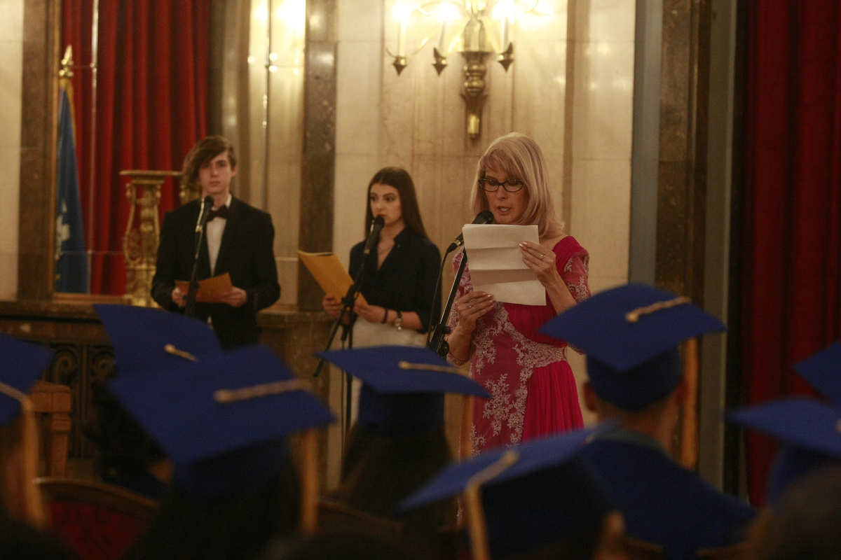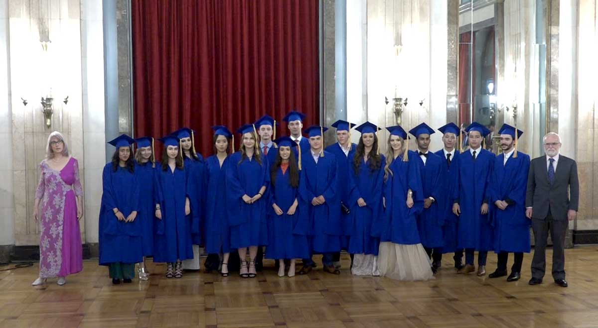 Pored pozdravnih govora uvaženih gostiju i principala škole, muzičkog programa i koktela, dvadesetoj generaciji maturanata škole odevenim u školske toge, ambasador Velike Britanije, Njegova Ekselencija gospodin Denis Keefe uručuje diplome.